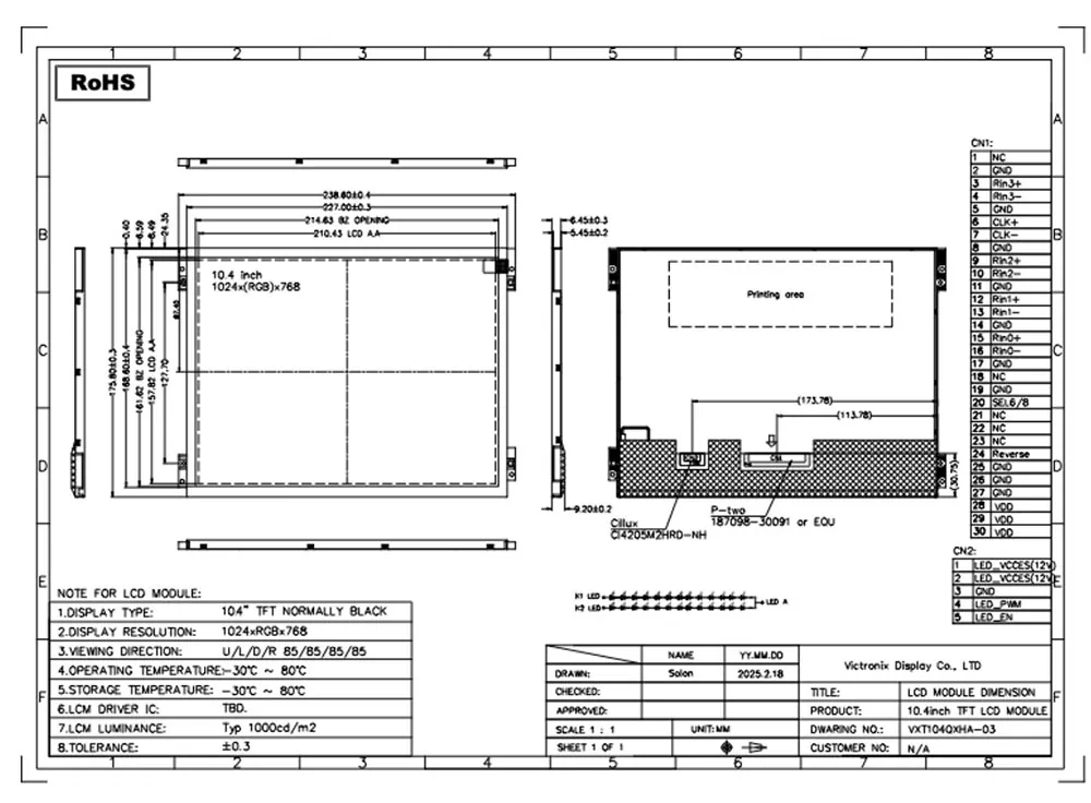Dieses Victronix 10,4 Zoll 1024 × 768 LVDs High Hellness TFT-Modul ist ein Hochleistungs-TFT-LCD-Modul von 10,4 Zoll, der für die Zuverlässigkeit in Industrieumgebungen entwickelt wurde. Es verfügt über ein IPS -Panel mit 1024 × 768 -Auflösung und 16,7 Millionen Farben und bietet außergewöhnliche visuelle Klarheit mit breiten Betrachtungswinkeln von 85 ° (3/6/9/12 Uhr Richtungen). Außerdem bietet es eine hohe Helligkeit von 1000 Cd/m², ein Kontrastverhältnis von 1000: 1 und eine Einheitlichkeit von 80% für die klare Besichtigung unter direktem Sonnenlicht. Als professioneller Hersteller und Lieferant von TFT -Modulen in China entspricht dieses Victronix 10,4 -Zoll -TFT -Modul vollständig den ROHS -Umweltstandards, um eine überlegene Anwendungsleistung zu gewährleisten. Wir bieten einen individuellen Service an, um die Bedürfnisse unserer Kunden zu erfüllen.