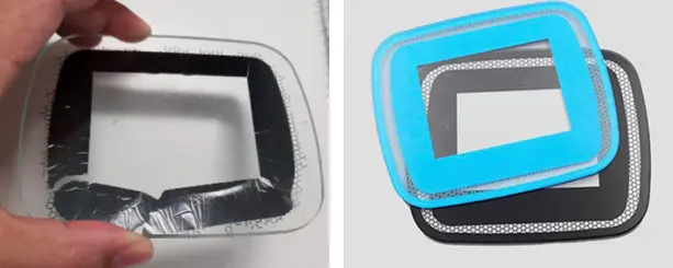 Reduzieren Sie streunendes Licht/Blendung: Die Kante des Abdeckobjektivs muss normalerweise mit schwarzer oder anderer dunkler Grenze (BMV) gedruckt werden, um die inneren Kabel, Komponenten, Kleberschicht zu verbergen und den visuellen Kontrast des Bildschirms zu verbessern. Anti-UV-Tinte ist normalerweise ein funktionelles Upgrade dieser Grenztinte.